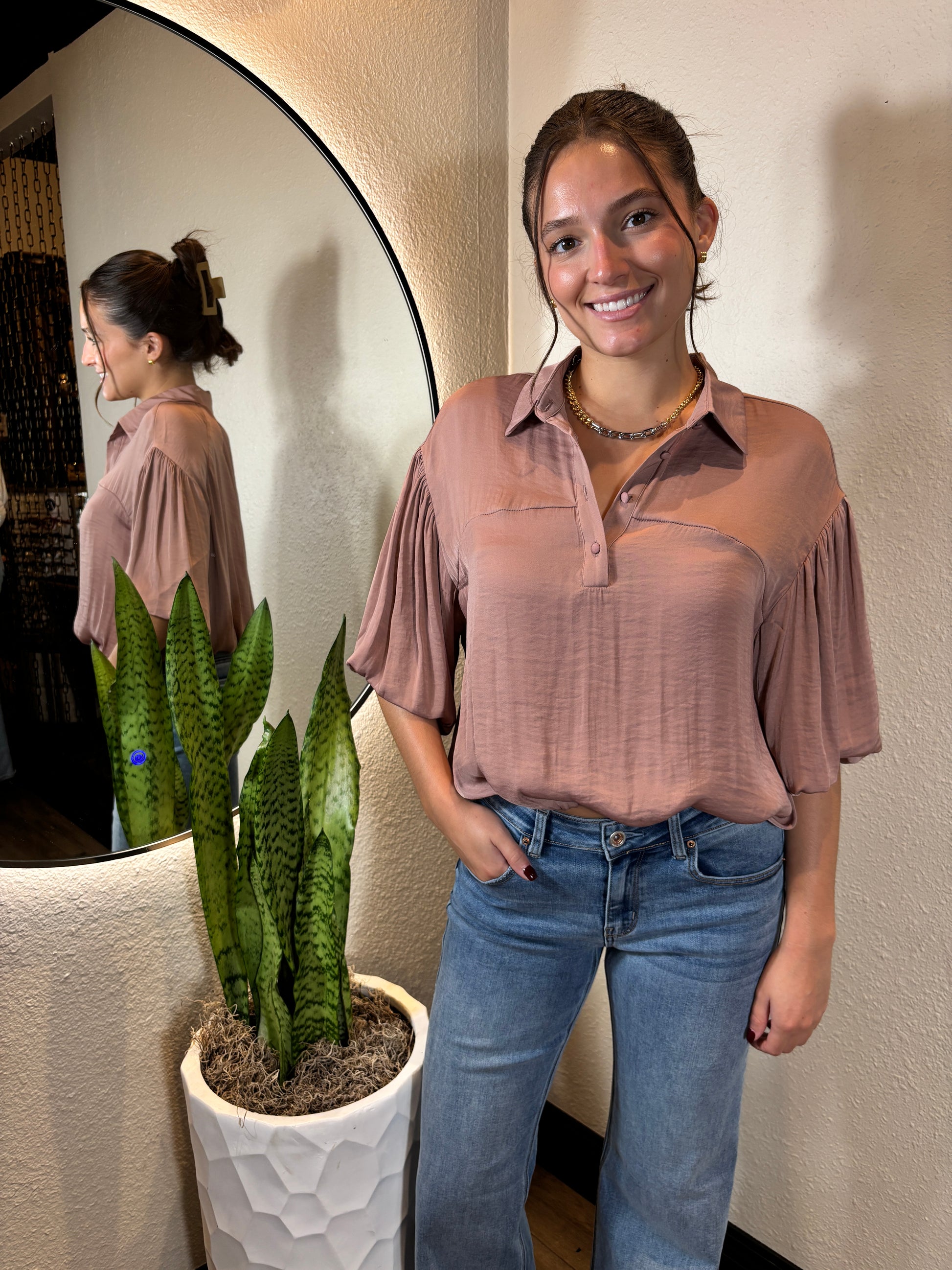 Get ready to make a statement in this Bubble Hem Blouse! With its unique bubble hem and stylish button placket, you'll stand out from the crowd. Pair it with your favorite jeans or a skirt for a playful yet stylish look. (Get ready to turn heads!)