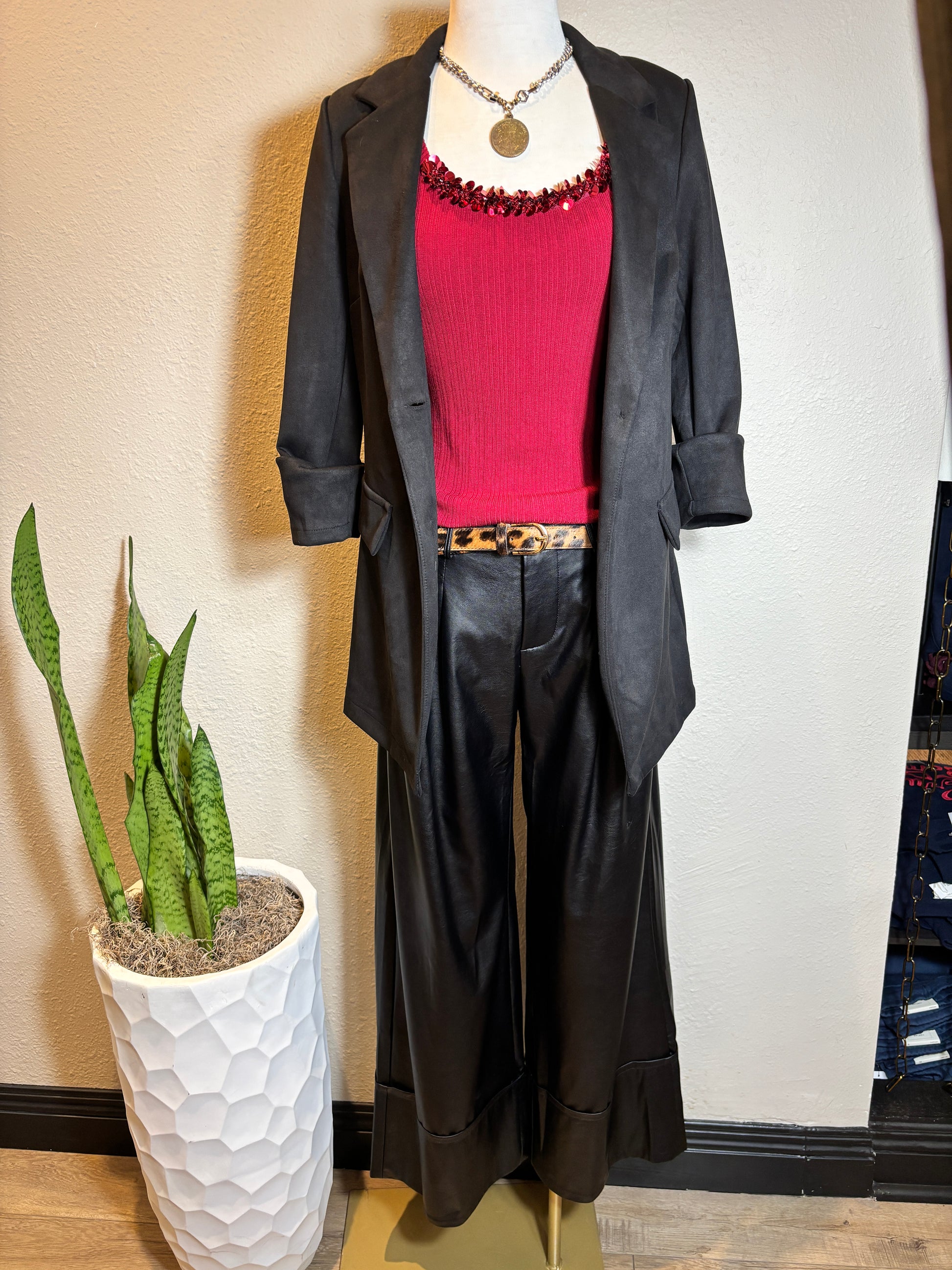 Add some flair to your wardrobe with our Faux Suede Long Blazer featuring a playful Pocket Flip detail. Made with soft faux suede, this blazer adds a touch of luxury to any outfit. Stay stylish and comfortable with this unique piece.